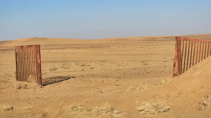 (3) electricity meters, (1) workers' accommodation, (1) well 110 meters deep, (1) rest house needing finishing, earthworks on all sides, 300 meters from the paved road, 3 km from the desert.